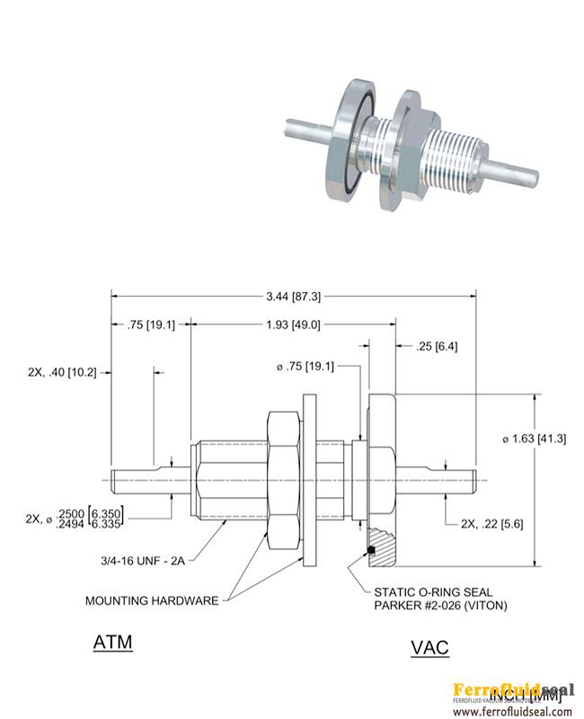 0.25 Inch SS-250-SLBD 103236 Ferrotec Ferrofluidic Seal Vacuum Rotary Feedthrough