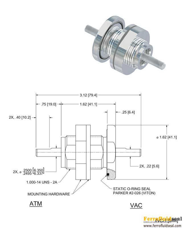 0.25 Inch SS-250-SLBE 107519 Ferrotec Ferrofluidic Seal Vacuum Rotary Feedthrough